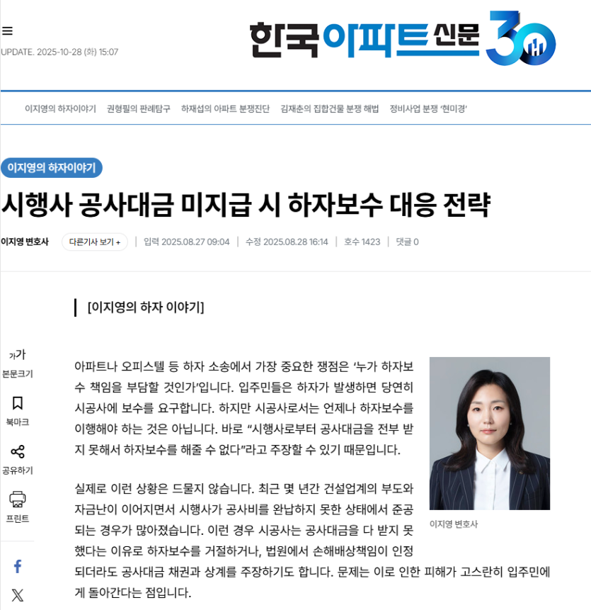 (25년 8월 27일) 시행사 공사대금 미지급 시 하자보수 대응전략
